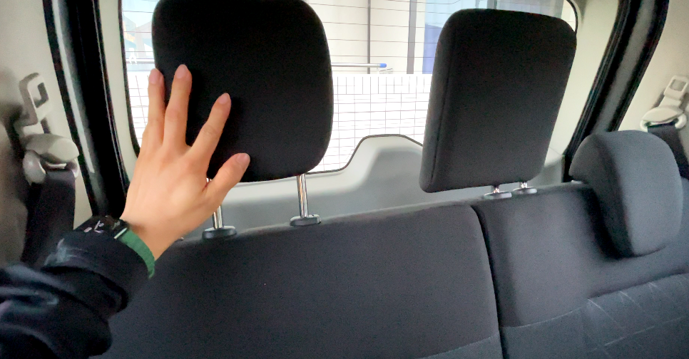 窓ガラスが全体的に大きく、ヘッドレストに空洞があるので解放感があります