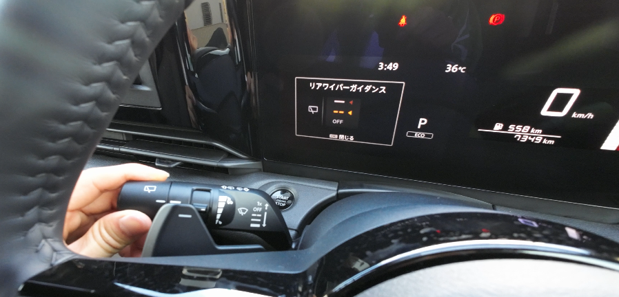 リアワイパーレバーの操作も割り込み画面が表示されます