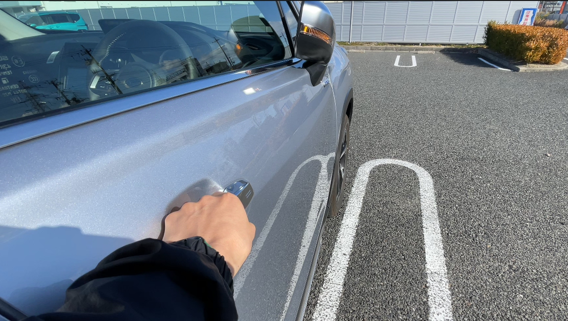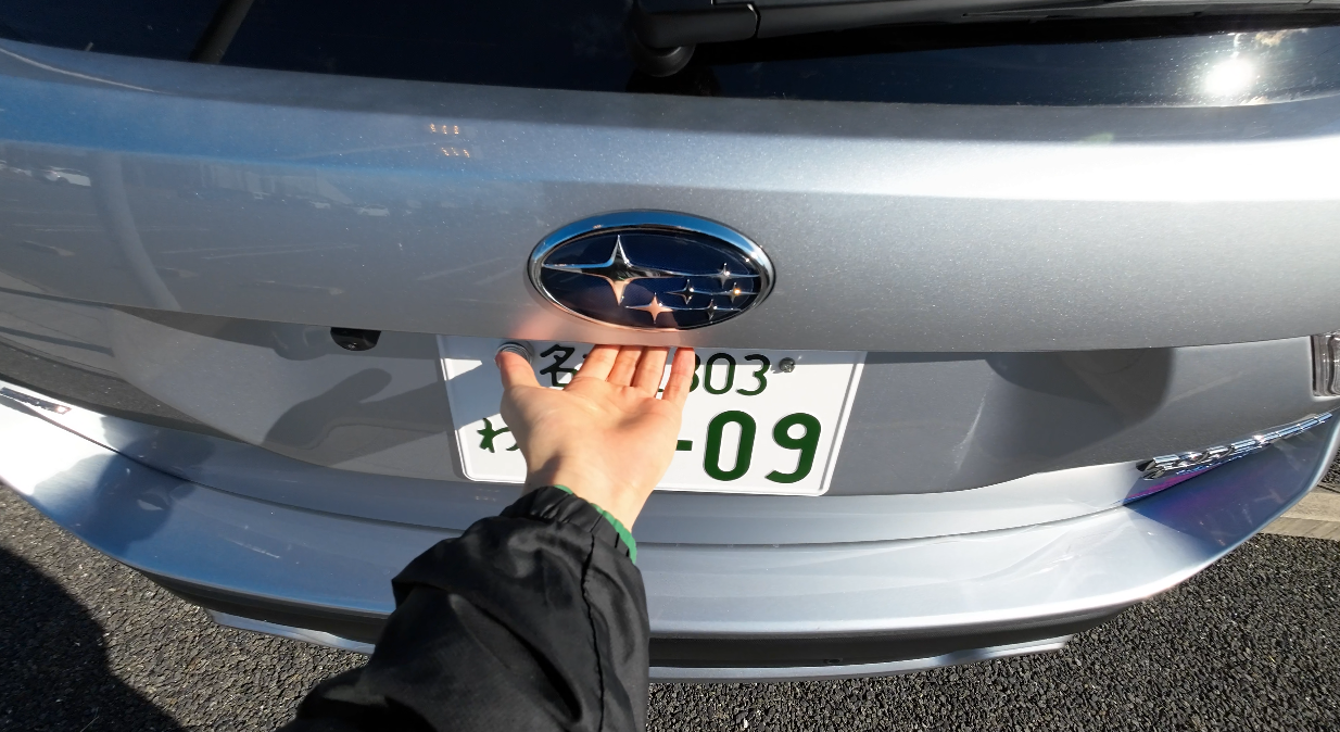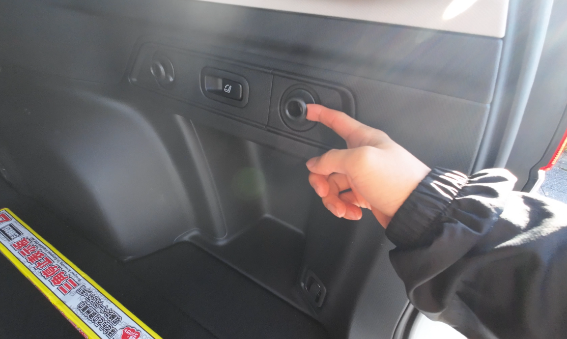 トランクの開け閉めや鍵閉めスイッチ、手動で動かすグリップあり
