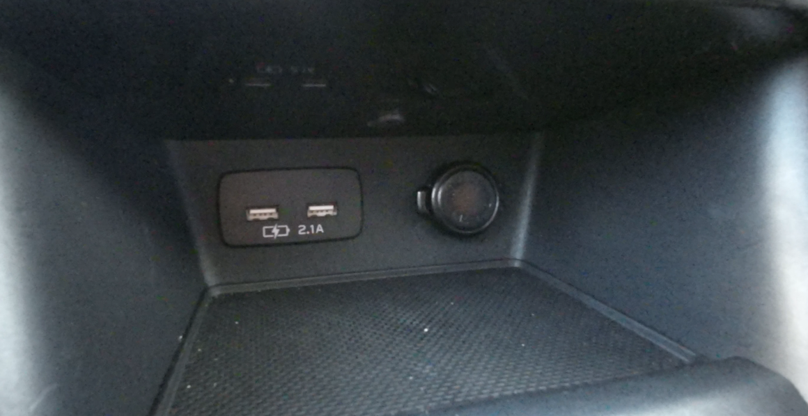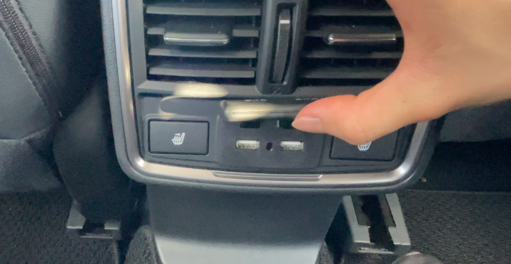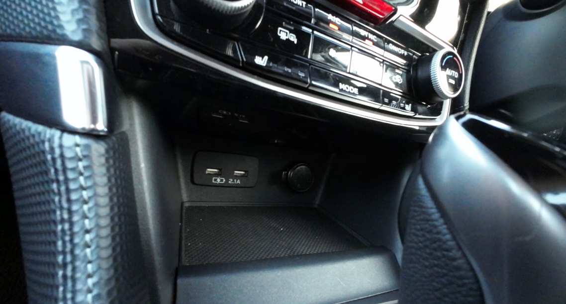 エアコンパネルと下にUSB-Aが2口とACソケット