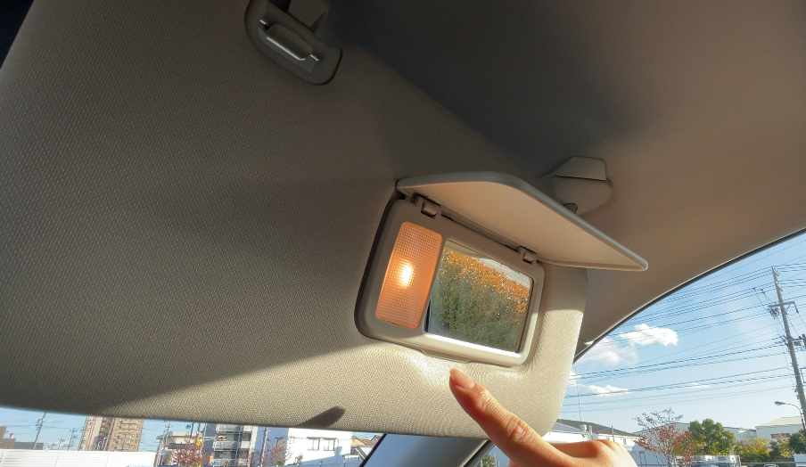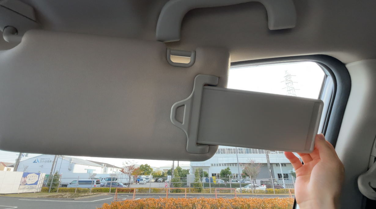 窓側にサンバイザーを移動させれば板を延長して日差しを避けることが可能