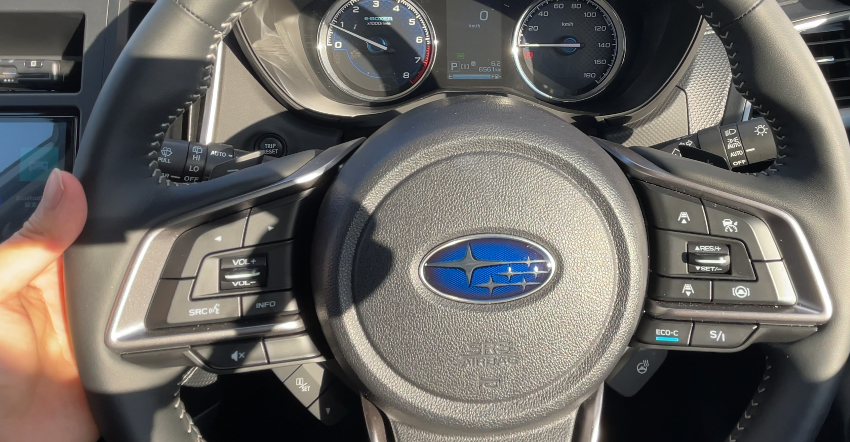 右のスイッチはクルーズコントロール、走行モード切替、ステアリングヒーター