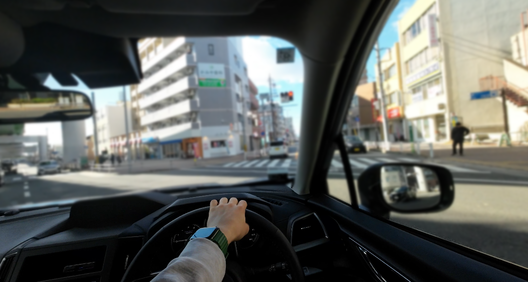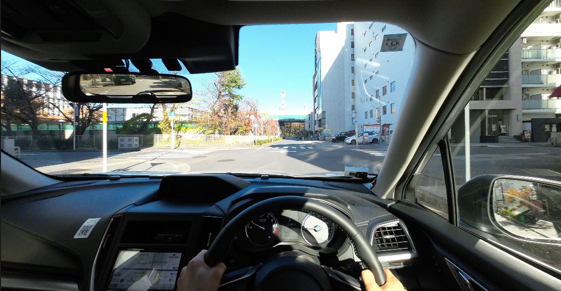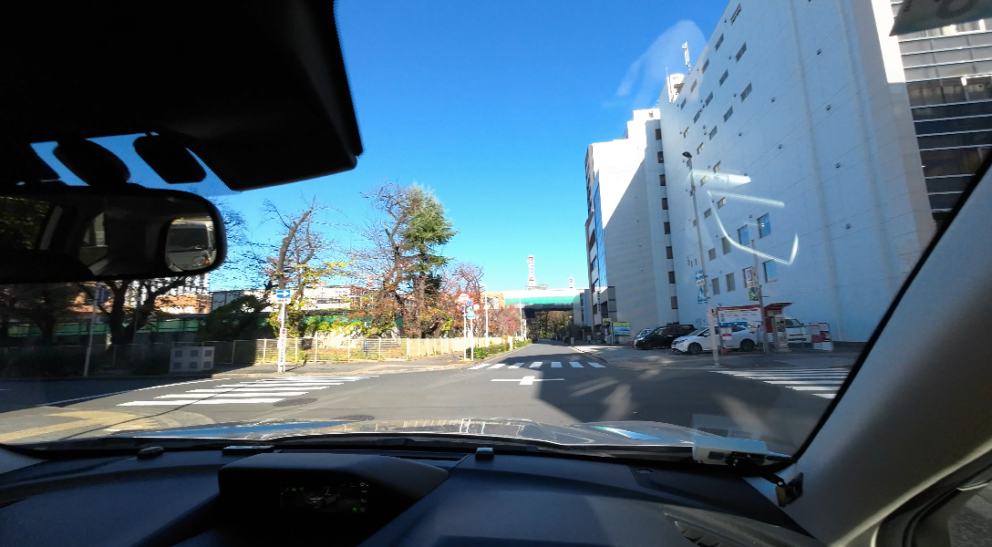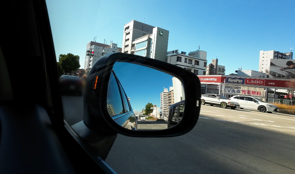 交差点での視界:Aピラーとサイドミラーの間には、十分な隙間が確保されています。