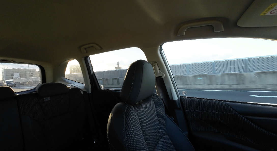 斜め後方視界:大きめのクォーターガラスと、リアガラスとの間のピラーが細いおかげで、斜め後方の視界も良好です。車線変更や合流もスムーズに行えます。