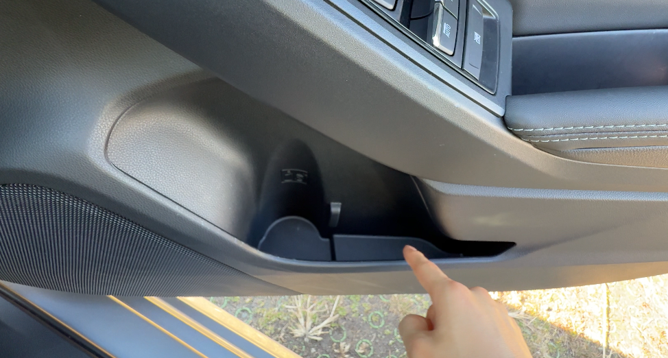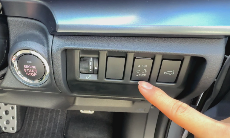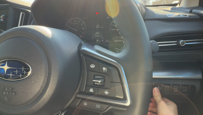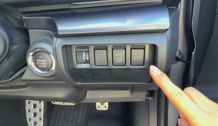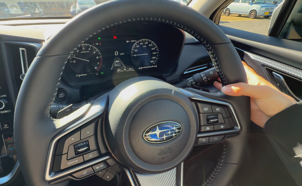 運転席にあるこちらのスイッチをONにすればリアのスバルエンブレムかざすだけでドアを開けられる(視聴者さん情報)