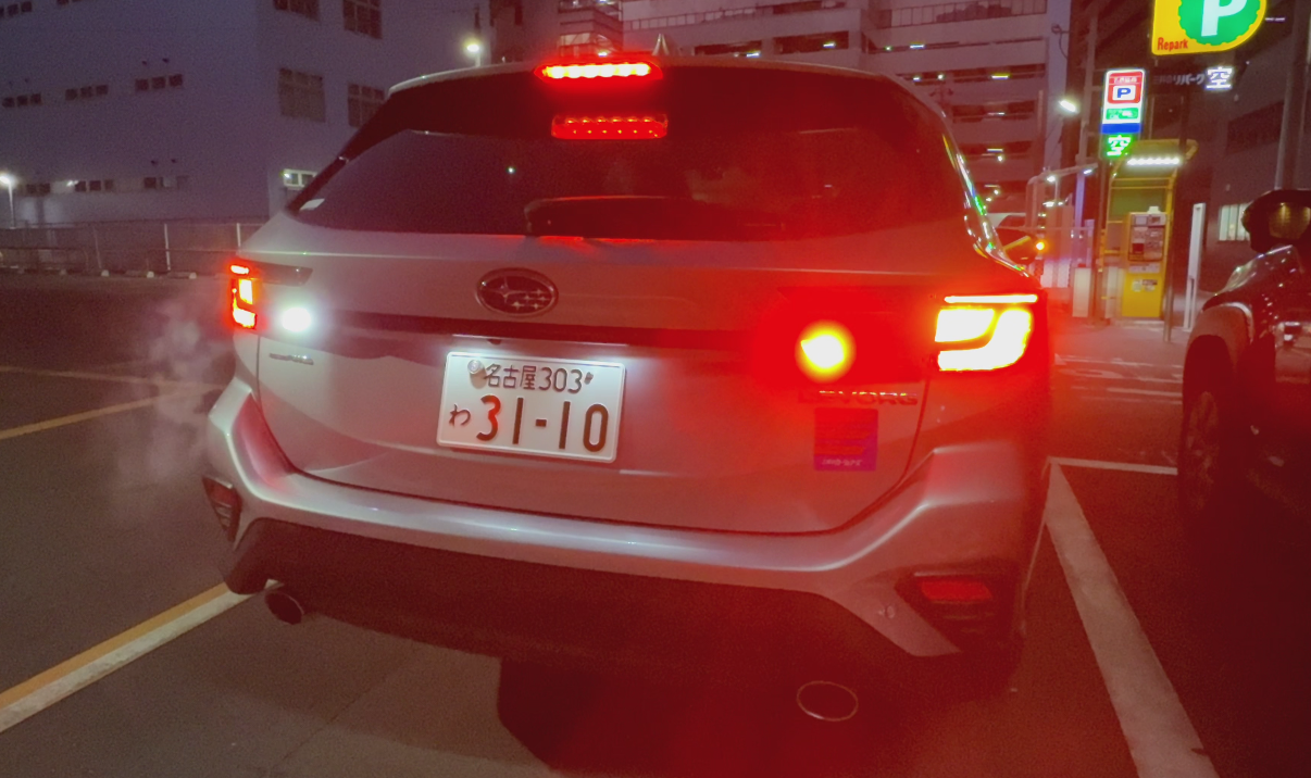 リアライトとブレーキランプはLED、ハザードとバックアップランプ(左側のみ点灯)は豆球、リアフォグLEDは右側のみが点灯