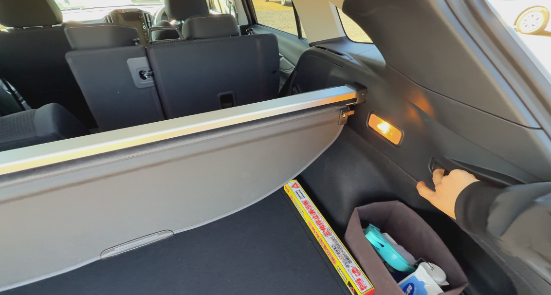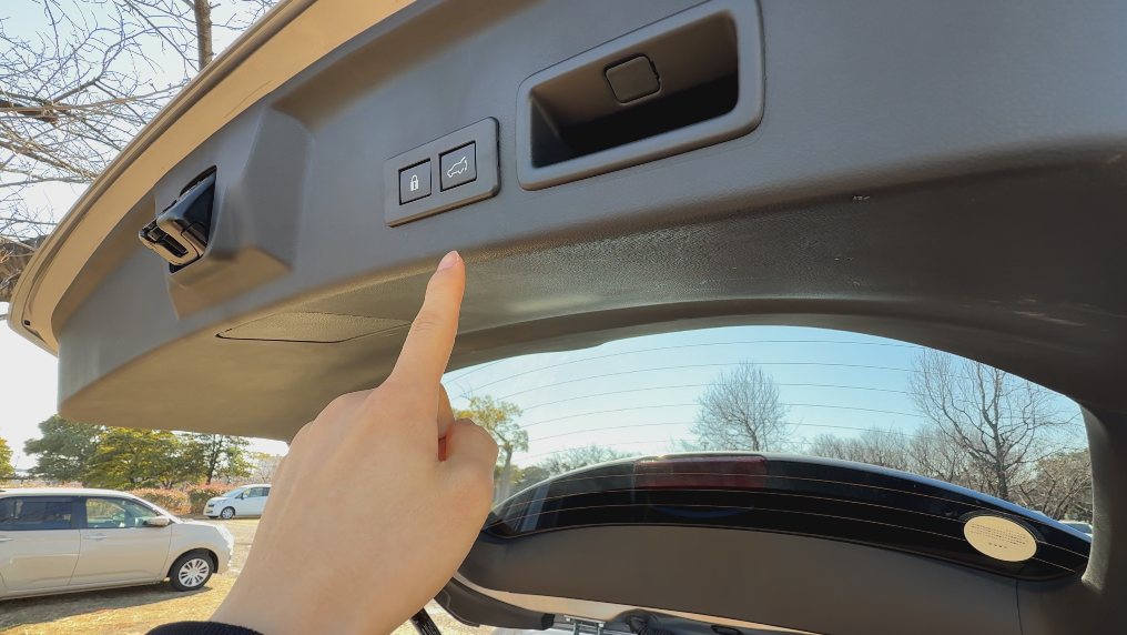閉める時はトランクのスイッチで閉められる(左のボタンなら施錠も同時に行うことも可能)