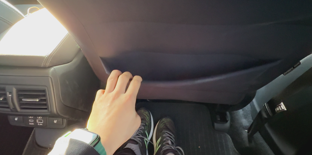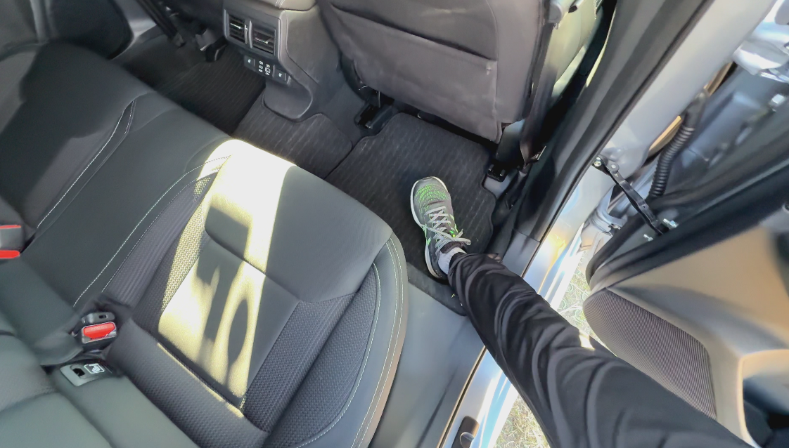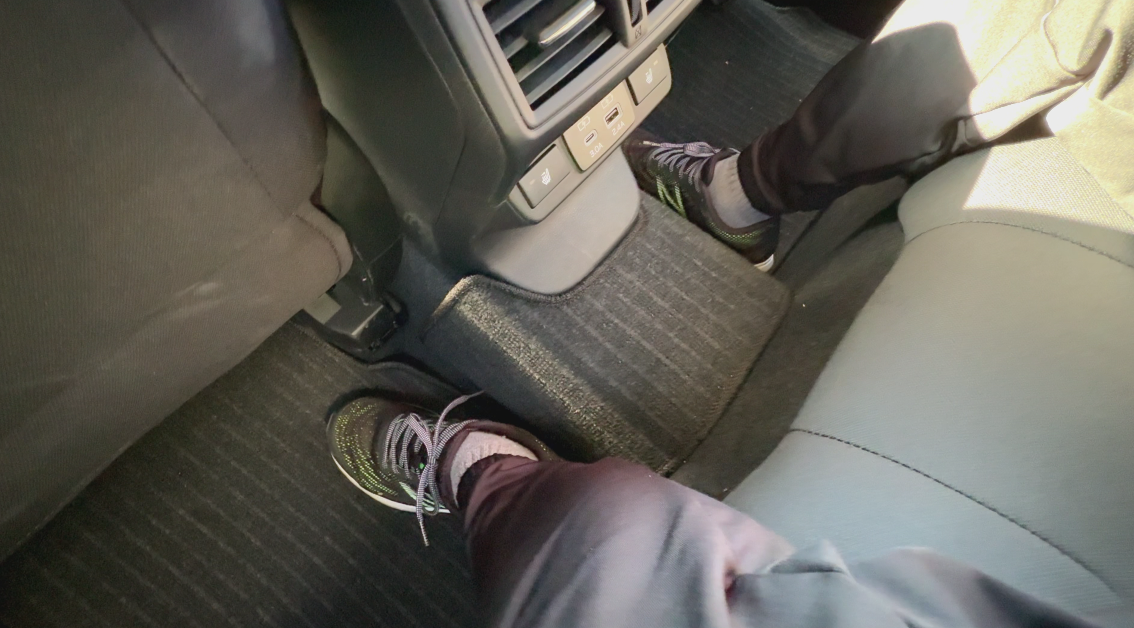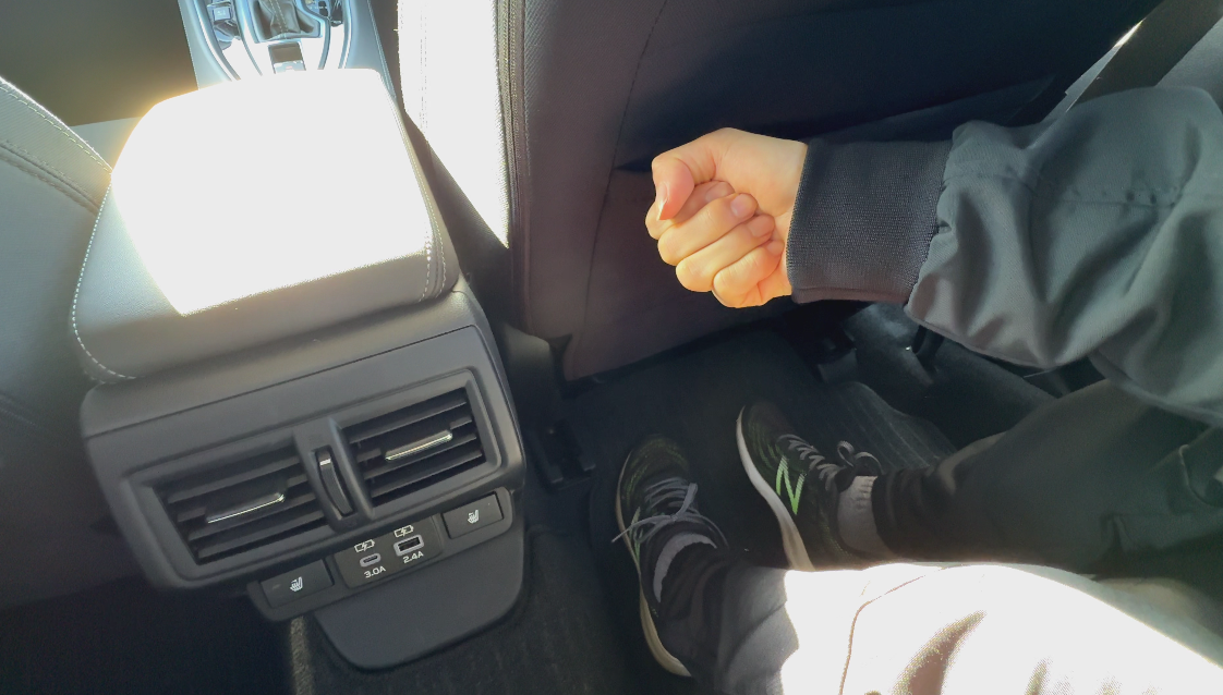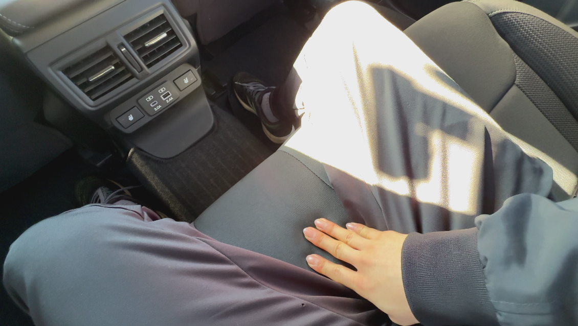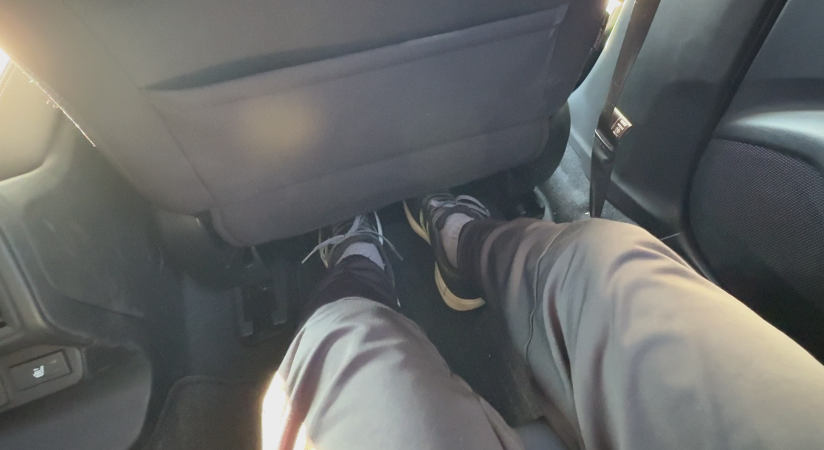 前席シートを160cmの身長に合わせた状態で、後席足元は拳3.5個分