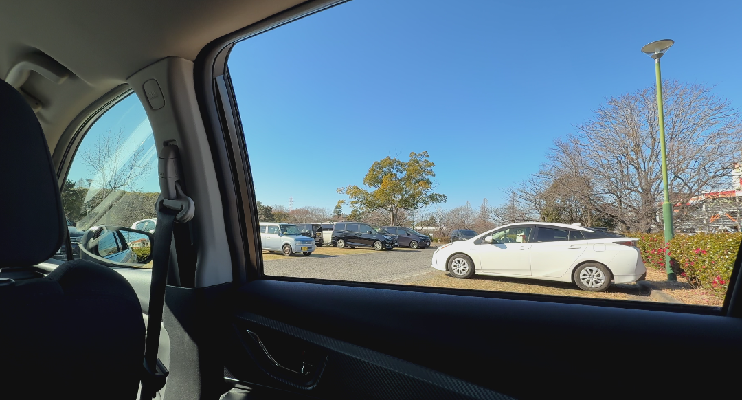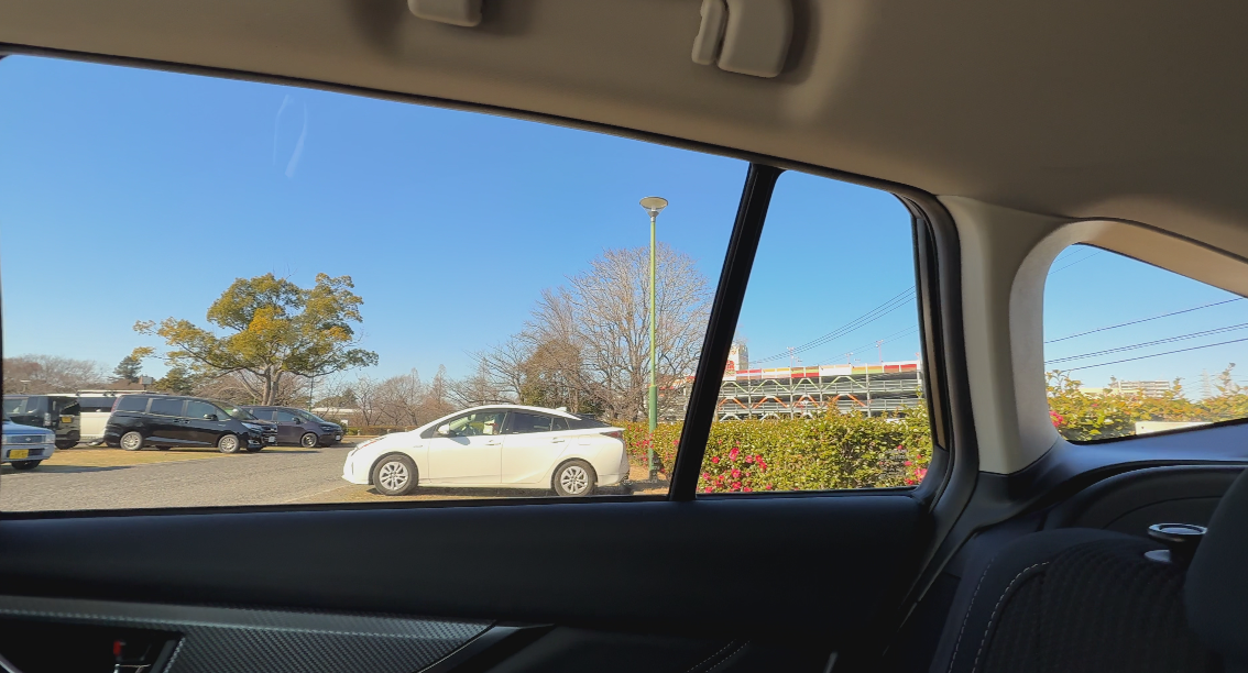 斜め後方は後席ガラスが大きいのはもちろん、クォーターガラスが大きく、視界良好