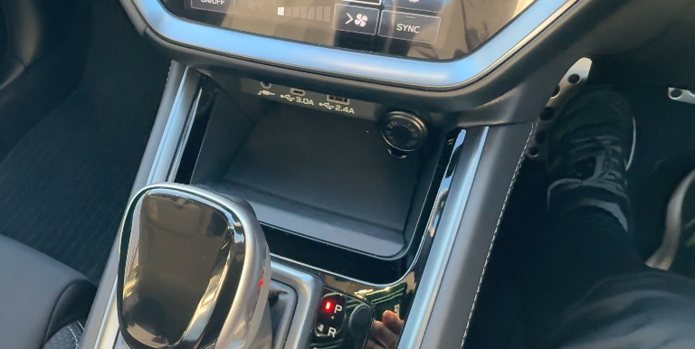 センターコンソールが高いので、中央に座る場合は両側に足を開く形になる