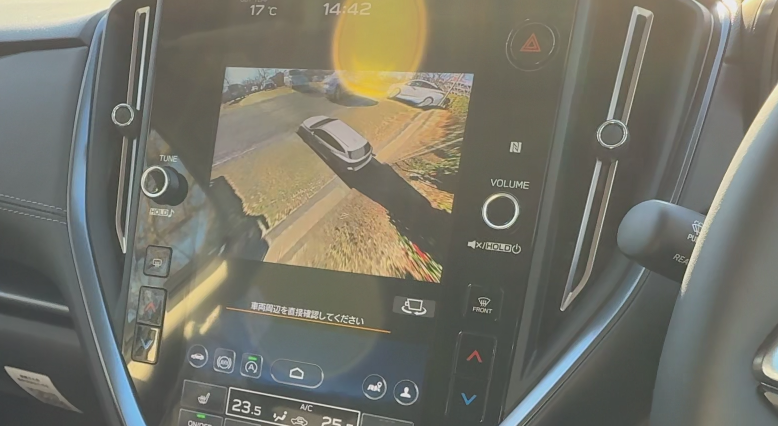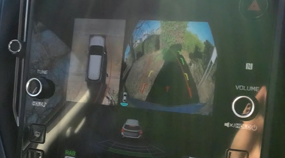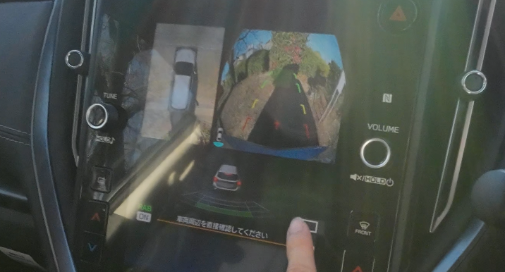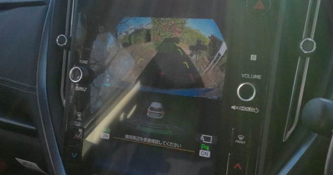 シフトレバー近くのカメラビューボタンを押すと車両周辺が表示される(シフトがPやDの状況によって表示内容が異なる)