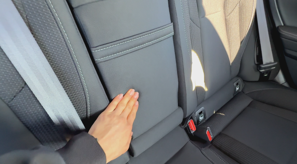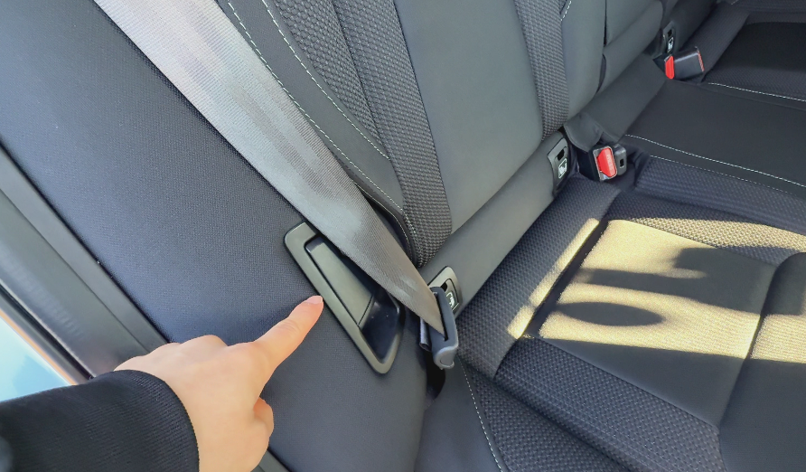 後席シートベルトは外側設置のため、シートを起こした際に巻き込みにくい