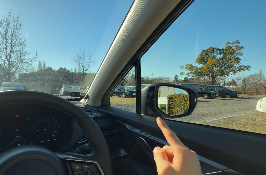 リバースに切り替えると、左サイドミラーが連動して下に向きを変える