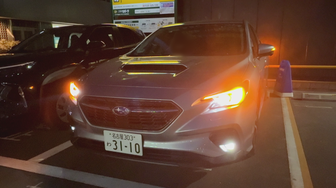 フロントライト点灯の様子はこちら!(画像だと伝わりづらいですがライト類は全部LED)