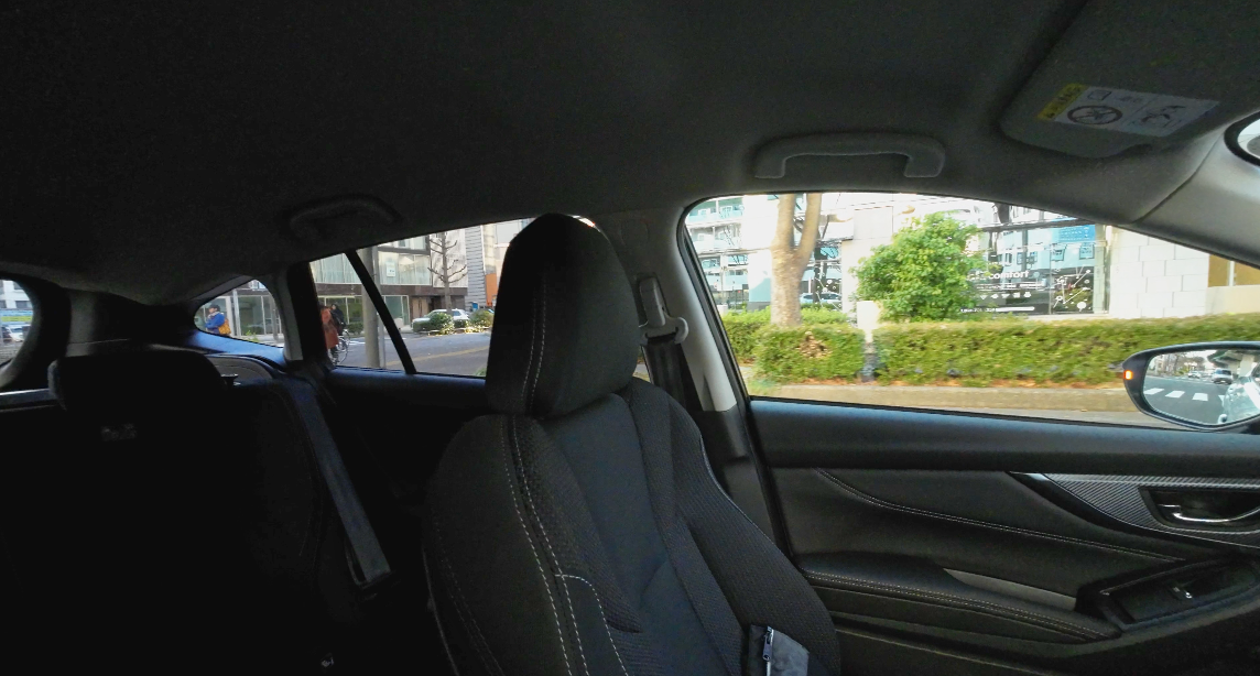 : 後席の窓が大きく、クォーターガラスも後方まで続いているため、斜め後方の視界も良好です。