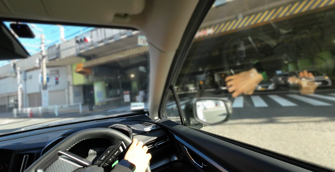交差点を曲がる際も、Aピラーとサイドミラーの間に隙間があり、視界を確保できます。