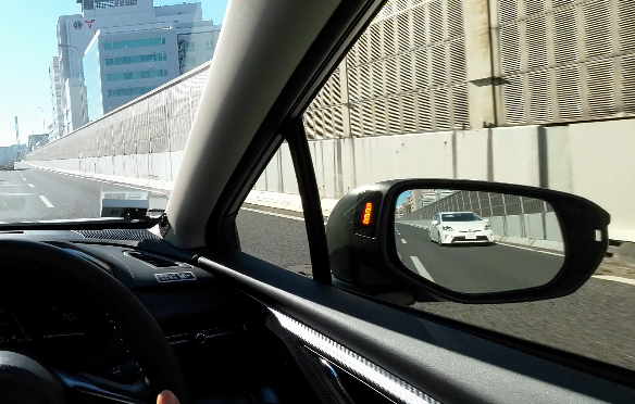 ブラインドスポットモニター : 左右後方に車両がいる場合、サイドミラーのランプ点灯で警告してくれます。
