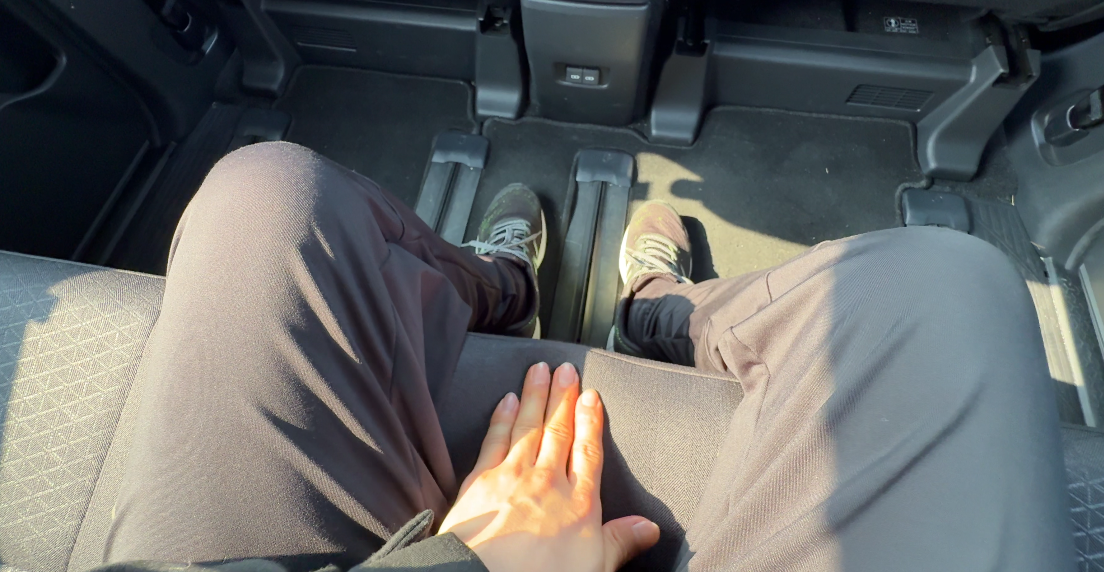2列目シートを一番後ろまでスライドさせると、足を伸ばせるほどの広々とした空間が出現。