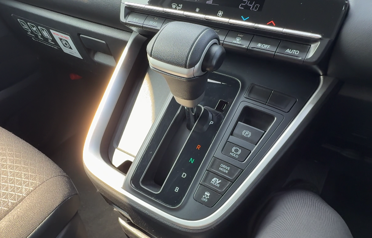 シフトレバーはウレタンのような素材で、周囲にメッキ加飾を施し、高級感を演出。