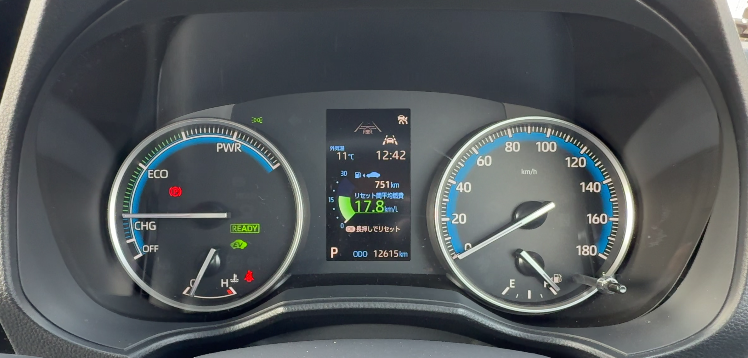 速度計、燃料計、エネルギーモニター、水温計はアナログ式。
