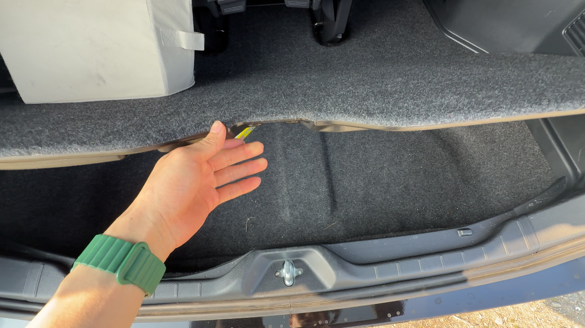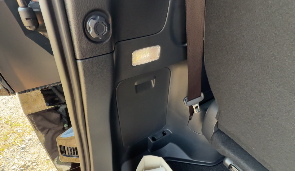 左側にLEDライト、パンク修理キット、荷室フックを装備。
