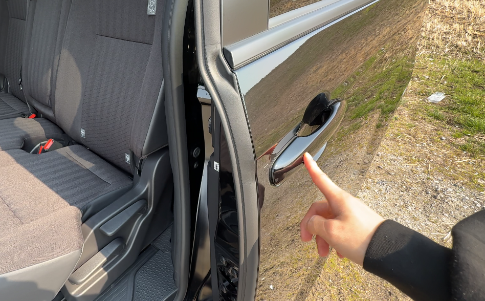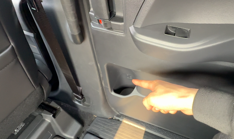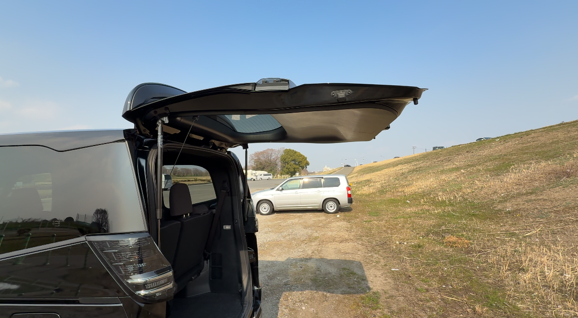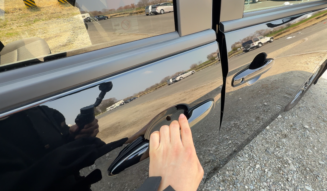 1番後ろまで開けるとドアの張り出しが大きいため、狭い場所では注意が必要。
