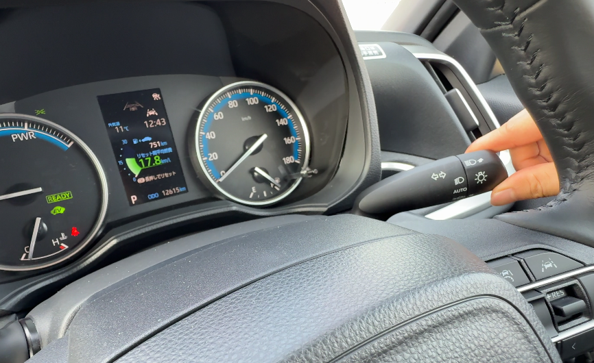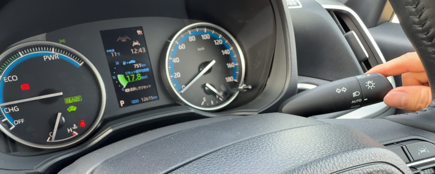 デイライトはライトオフの状態でレバーを手前に1段階引くことで点灯。