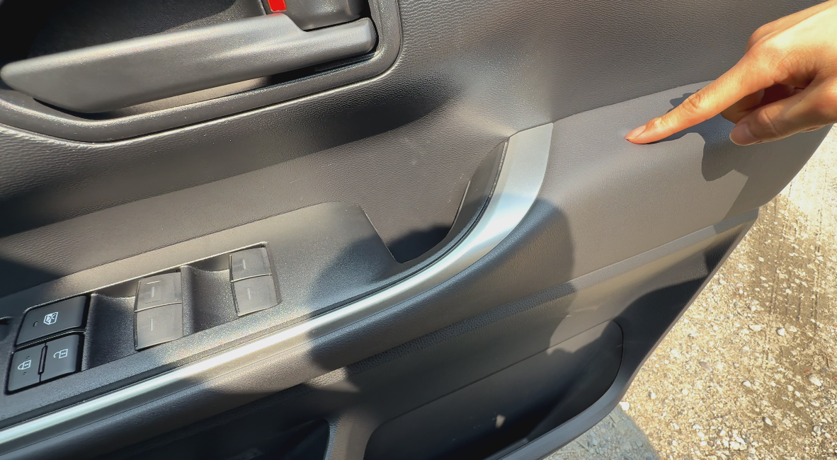 ドアトリムは、柄が使い分けられたハードプラ素材。