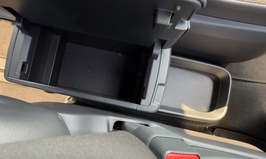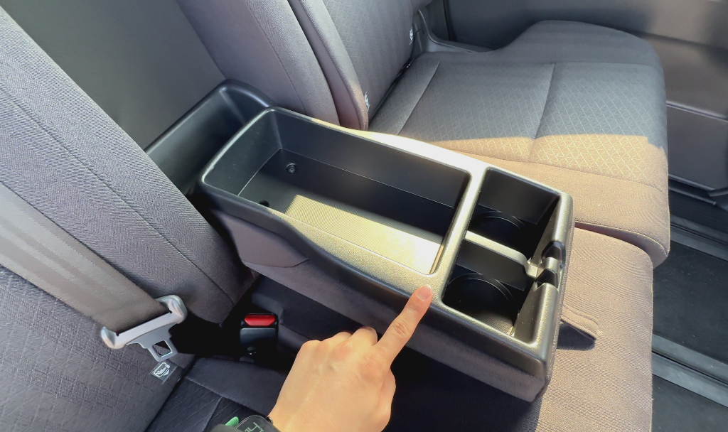 中央席にはアームレストを装備(素材がハードプラなので小物置きとして使うのがメインかも)。