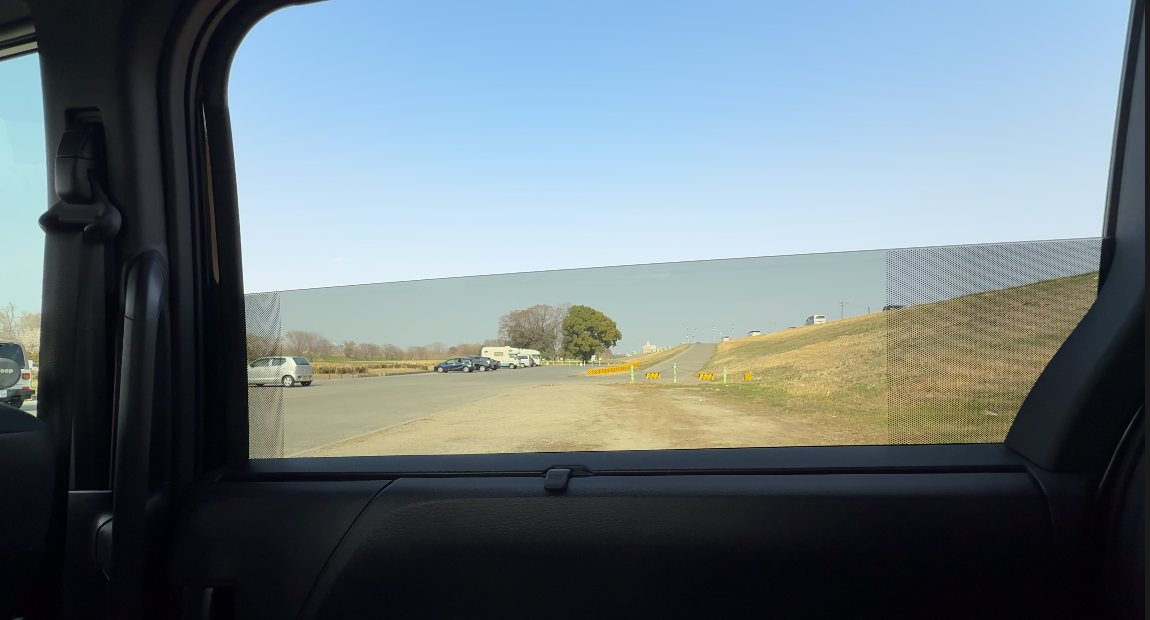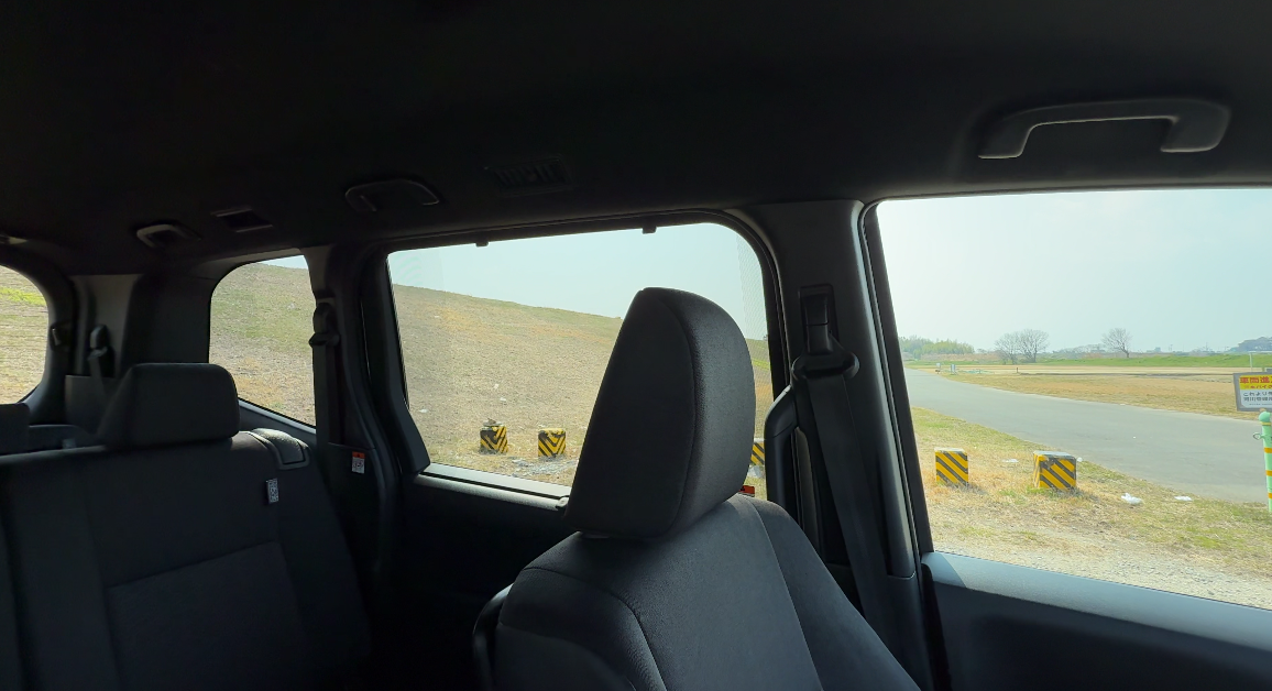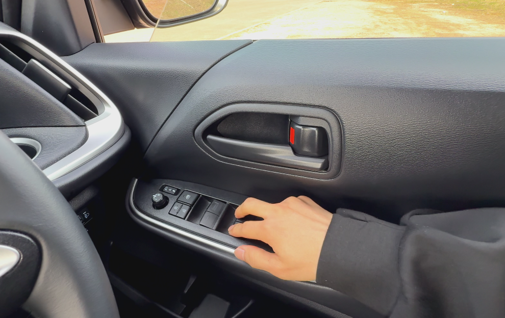 窓は後席でもオートパワーウィンドウで、6割くらいのところまで下がる