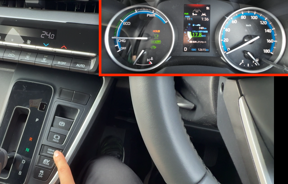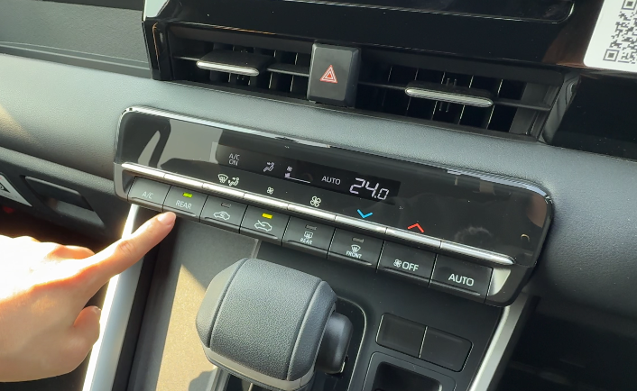 エアコンパネルは物理ボタンで操作しやすく、リアの冷房ON/OFFも前席で操作する。