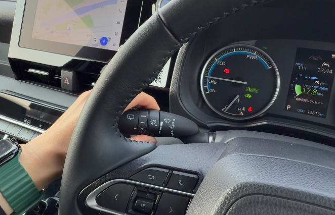 ウィンカーレバーは軽く入れると5回点灯、奥まで入れると通常の点灯に。