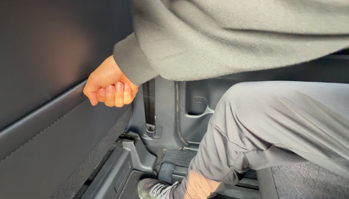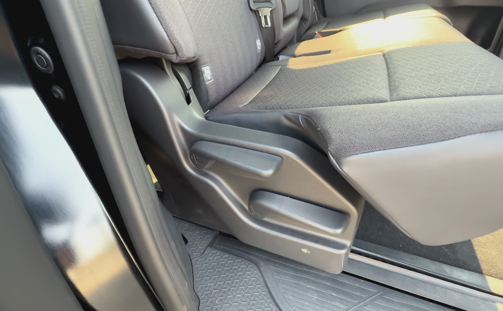 3列目へのアクセスは、肩口のレバー操作で背もたれと座面を同時に前に倒せるウォークイン機構を搭載。