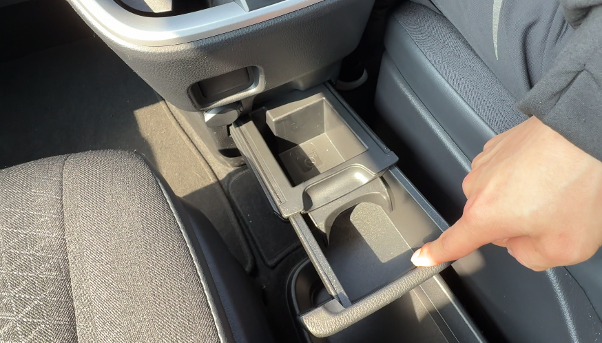 センターコンソール下には、ドリンクホルダーと小物入れを配置。