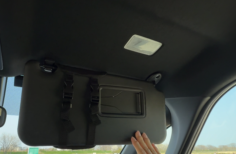 運転席側には、チケットホルダー、スライド式ミラー、LEDライトを装備。