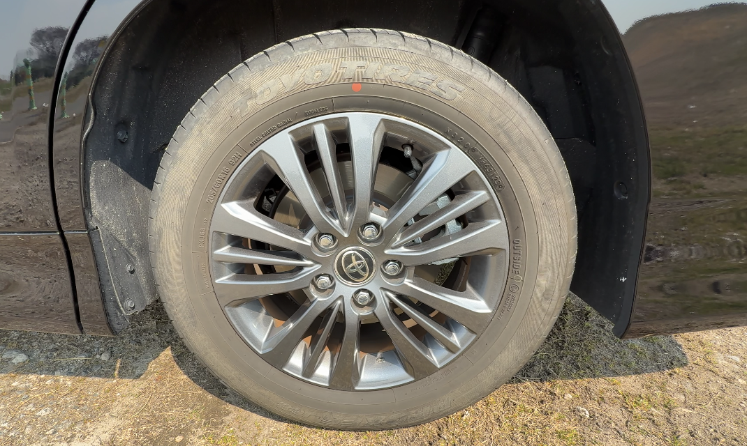 ホイールはトヨタ純正のグレーで、精巧なデザインが目を引く。