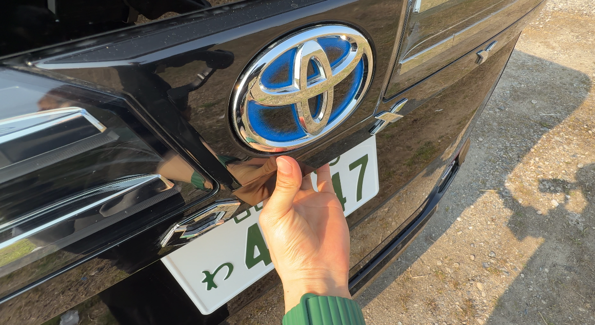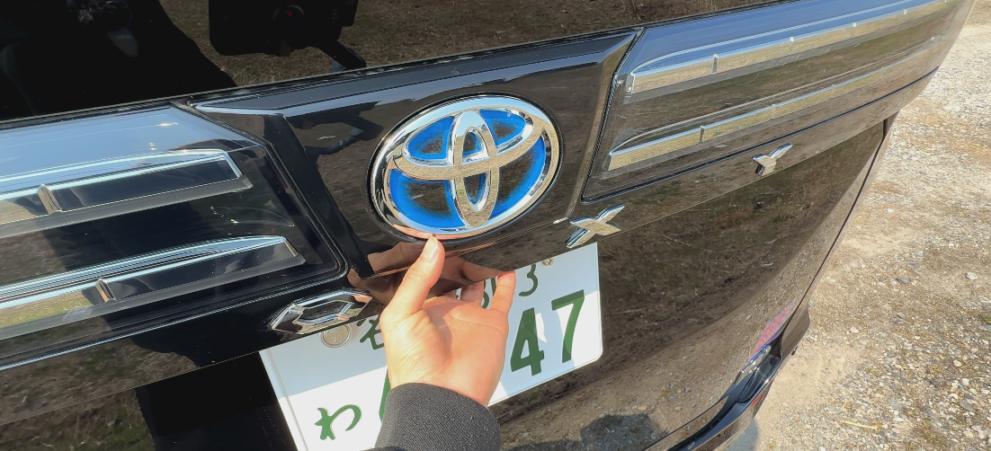 トヨタエンブレム下に、バックドアオープナースイッチを配置。