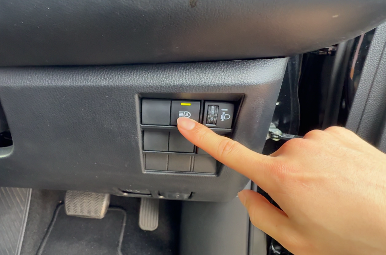 オートハイビームの切り替えスイッチは、運転席右下に配置。