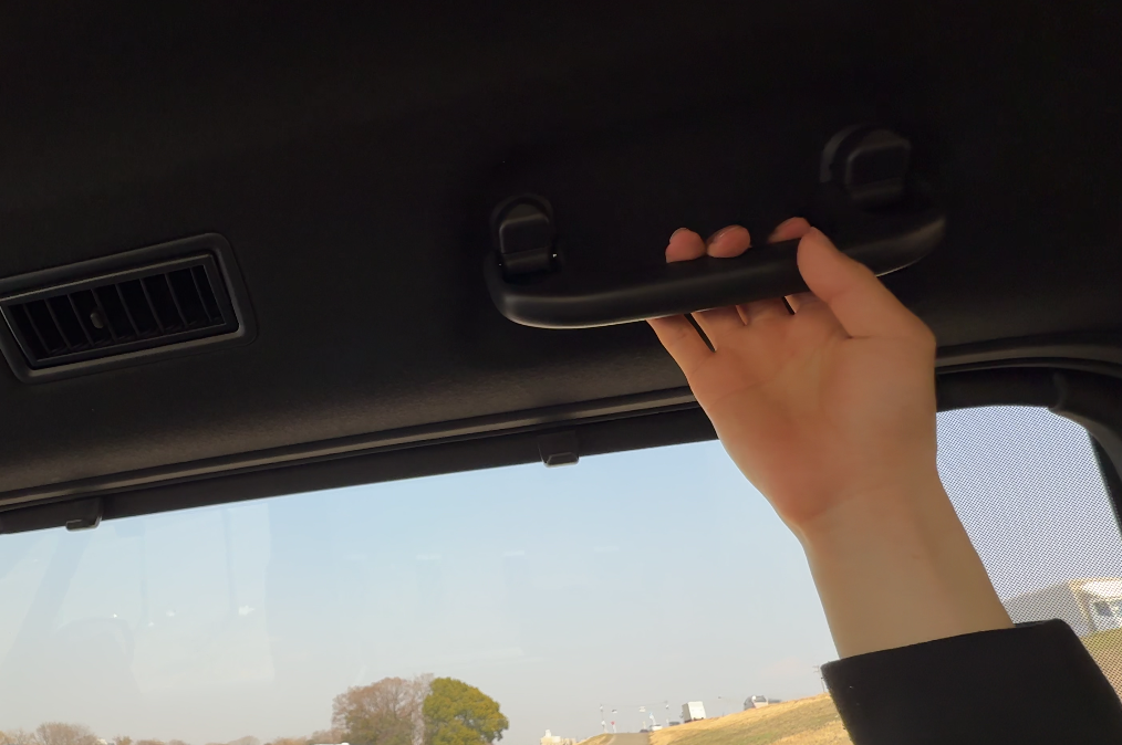 ドアグリップ周りはメッキ加飾、非常用ドアハンドルはソフトパッド素材。
