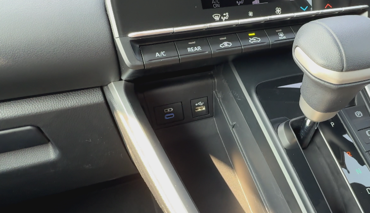 USBポートは、センターコンソール下部にデータ転送用Type-Aと充電専用Type-Cを1つずつ装備。