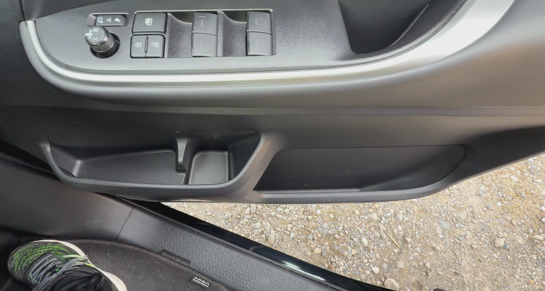 ドアトリム上部はハードプラ、下部はファブリック素材を使用。