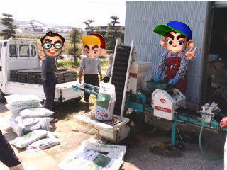 つーちゃんパパは、地域の農家の皆さん達と一緒に、お米の種まきをしました。つーちゃん家族も一応農家の一員ですので今日の種まきは、13人集まり、10軒分の「こしひかり」「もち米」などの種まきでした。もう1種類お米があったが、つーちゃんパパは忘れたようです。土の入った苗箱を、この機械に通すと自動的に水がまかれ→種がまかれ→土をかける事が出来るベルトコンベアーみたいな機械でした。(すごーい)この機械自体は、以前から使っていましたが、今年からはバージョンアップで、昨年までは、土の補充は人力でしていました(高さ1m30cm程度)が、エスカレーターみたいな機械で土を上まで上げる事ができるんですよ。農業も高齢化が進んでいますので、力仕事を最小限にできる機械が色々あるんですねー。朝、8時に始まり、後かたずけが終わったら17時でした。途中、次男がやってきて小父ちゃんたちと話をして、本人はお手伝いをしている気満々でしたが、結果的に邪魔をしていたので、急きょ、つーちゃんママが次男を迎えに来たが、なかなか帰らず、お手伝い?をしていました。苗箱を、15段重ねてその上に濡れたコモをかけました。乾燥しないように、ビニールシートで覆いました。(もしかした、保温効果も)今度は、5月3日か4日に苗を苗代に出す作業が待っています。「1年分のお米をもらうためには、しっかり働いてもらわなければ」 、と思うつーちゃんママでした。今年もお美味しい御飯がたべれそうですパパありがとう。