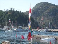 今日は、島根県大田市五十猛町大浦の「春の大祭(たいさい)」です。「春の大祭」は、私の子供の頃は4月10日に行われていましたが、いつの頃からか、4月の第二土曜日に開催するようになっていたのです。我がの祭りといえば・・・も・ち・つ・き・・・ですが、昨日は私の帰宅時間が遅く、それによさこいの会計報告と重なり、もちつきに参加できませんでしたが、先程「もち」を頂いてきました。餅を貰いに行って見ると、海に18隻の「大漁旗」をつけた船がパレードしてるではありませんか。わたしにとって、「春の大祭」は昼3時頃からのお神輿と山車から撒かれる、大量の「飴」まきがすべてだと思っていたので、感動しました。昼からは、つーちゃん家族は大量の飴をゲットしてきます。