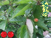 今年つーちゃん家族のサクランボの木が初めて花を咲かせていたのですが、実が無いなーと諦めていたつーちゃんママ・・・先程、長女が「みんな来てーすごいよ~すごいよ~サクランボがなってるよ~。」つーちゃんパパとママは、もうビックリつーちゃん家族皆で感動の一時でした。結構花は咲いていましたが、サクランボの実は2本の木で、1個ずつで2個です。いったい誰の口に入るのでしょうか?