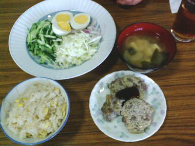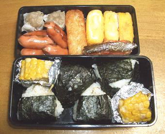 今日は、長久小学校のスケッチ大会です。しかし、朝からのあいにくの、手引きが丘公園へ、汽車で行って、スケッチしたり遊んだりして帰る予定でしたが.......このために、つーちゃんママは長男の為に、ほんの少し早起きして、お弁当を作りました。愛情いっぱいの弁当を作ろうと頑張っている横で、長男が横で注文をつけるので困りました。長男の注文は、「野菜なし」ただそれだけですが、つーちゃんママとしてはそれが一番困る注文です。そのため、このような弁当になりました。あとから、つーちゃんパパがパパの弁当は?と聞くので、いつものように職場で給食を食べるようにやさしく言ってあげました。今日は、この雨でスケッチ大会は中止かも?ただ小学校に行く前に長女が今日無かったら、来週スケッチ大会だと言って出かけました。もしかして、来週も弁当を作るのかしら?????昨日逃亡が発覚したザリガニは、1匹は玄関の戸に挟まって死亡が確認され、もう1匹は先ほど、玄関で無事保護されました。皆様にご心配(特につーちゃんママが変なところから出たら嫌だなと心配していて、家族は誰も心配していないようでしたが)をおかけいたしました。