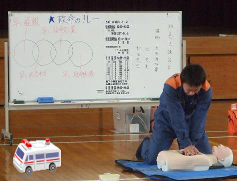 昨日は、つーちゃん家族の長男と長女の小学校の月に一度の参観日の日でした。今月は、つーちゃんママが参観日に行くことにしました。何故かと言うと、つーちゃんママには任務があったのです。それは、授業参観の前の「救命救急法の講習会」の司会をしなくてはいけなかったからです司会といっても、講師の先生の紹介をするだけなのですが、つーちゃんママはドキドキです無事に任務も終わったので、 「心肺蘇生法」を実際に人形でしてみる事に。 「胸骨圧迫」を30回を2回するだけでも、結構疲れるのに、救急車が来るまで一人では中々できるものではありませんだからこそ、一人でも多くの人が「心肺蘇生法」が出来れば交替ができるし、一人でも多くの命をたすけらるのではないでしょうか。心肺蘇生法ができなくても、救急車を呼ぶことはできますし、野次馬から、見えない様に人壁を作ってあげるのも、救命救急のお手伝いになると思います。昨日は、50名以上の方が参加して頂きありがとうございました。夏のプールが事故の無いように願います。でも実際に家族が倒れたら、パニックでできないかも 昨日の参観日には、つーちゃんのママの楽しみがありました。それは、給食の試食会があったからです。給食ってなんて美味しいのでしょう家では余り食べないのに給食は沢山食べるつーちゃん家族の子供達の気持がわかりますしかし、つーちゃんママは、ゆっくり給食を味わってはいられません。給食後には、救命救急講習会の司会の大役があるからです・・・