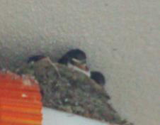 毎年この時期にになると、つーちゃんママの実家のある五十猛町にはツバメがたくさんやってきて、巣を作り、ツバメの子を産みます。つーちゃんママの実家も玄関の外灯に毎年巣をつくられ、子ツバメが巣立っていきます。今年も、おおよそ五匹のツバメが生まれました。次男は、ツバメの巣が上の方だから良く分からなかったようで、つーちゃんパパにだっこしてもらいやっとで子ツバメを見つけて、大喜びしていました。 つーちゃんパパは、親ツバメが餌をやりにくるので、劇的場面を携帯で撮ろうと、ひそんでみるけど、親ツバメもよく分かっているようで、近づいてくれません。ちょっとよそ見をすると一瞬に子ツバメに餌を与え、すぐにどこかに飛んで行ってしまいます。慌てて撮ったのがこの写真です。まあ、携帯カメラの精度だとこんなものかもこれからも、実家に行くたびに観察したいなと思います。