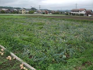 本日は、の為、朝から玉ねぎの収穫予定が、急きょ昼からとなりましたが、大活躍?のつーちゃん家族です。 昨年までは、確か1反(991.74平米)あったはずの玉ねぎ畑でしたが、今年はとても少ないので、楽勝と思っていた、つーちゃんママでしたが、その理由をお母様に聞いてみると、 「少なくないよ~幅狭めただけよ~」ガガーン聞くんじゃなかったー 早くしないと、日が暮れてしまいます急がなきゃ。玉ねぎの収穫は、低い姿勢の単純作業なので、慣れていないつーちゃんママは早くも、ふくらはぎが、ピキピキブルーになりそうな時に登場したのが、次男が「玉ねぎ坊主マン」に変身して和ましてくれました。つーちゃんママもパワーアップです。まだ、玉ねぎの収穫は終わってはいませんが、ここでつーちゃんママは退散です。明日も頑張るぞー 無農薬!無化学肥料!安心で刺激の少ない甘~いサラダ用たまねぎで健康に♪もちろん肉じゃがに...