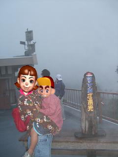 今朝は、3時13分にホテルにツアーバスが迎えに来て、富士山五合目にご来光を見に行きました。バスに乗ると、霧雨が降っているので日の出が見えるか心配をしながら、心地よい振動のためながら、五合目に到着。周りは、真白・・・・まずは、五合目レストハウスに入り、富士山がどうしてできたかの説明を受け、展望台に向けて出発やはり周りは真白で、何も見えません。ガイドさんが「今4時55分あと、2分したら山中湖の向こうから太陽が見えます。」と案内をしてくれるので、皆そちらを凝視4時57分今日の出です......でも何も見えません。「もう5時になりました、太陽はだいぶ上にあがっています。霧で見えませんね・・・・これ以上いても見えまえんので、レストハウスに戻ってあったかいコ-ヒーをごちそうします。」と言って、展望台をあとにしました。ガイドさんにご来光が見えないことがあるかと聞いたら、「3日に1度くらいかな」ということでした。見える日がですね。でも、帰りに「登山証明書」とご来光を見えなかった人にはこのツアーチケットをプレゼントされました。次回は無料でこのツアーに参加して、今度こそは見て下さいとのことです。でも、ご来光は見えませんでしたが、日頃の行いが良いつーちゃん家族に富士さんからプレゼントがありました。それは、山頂を2~3分の間ですが見せてくれました。お土産をいっぱい買って、5合目を後にしました。朝7時前には、ホテルに戻り、朝食を取りました。
