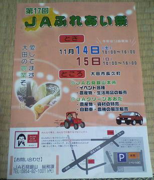 土曜日・日曜日、つーちゃん家族の近所では「JAふれあい祭」が開催されます。着々と準備が始まっており、駐車場はまるでサーカスがきそうなテントが沢山ならんでいるので、4歳の次男も「お祭りがあるだー?」と楽しみにしているようです。つーちゃん家族が毎年楽しみにしているのは、 「ポン菓子」の実演販売です。都会にいる甥っ子・姪っ子に送ると凄く喜ばれるんですよ。特に我が家は、新米を持参して行きますから美味しいのです。今年は、 「スタンプラリー」をすると、ダブルチャンスの抽選会で「大型テレビ」が当たるとの噂が・・・。つーちゃんママのマイブームの「米粉コーナー」も気になります。晴れますように